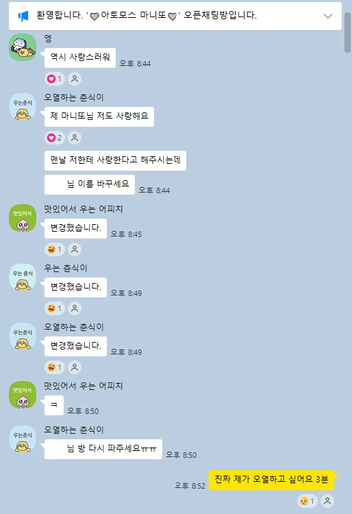 익명 참여를 부탁드렸으나 뒤늦은 이름 변경으로 인해 익명이 아니게 되어버렸다던가