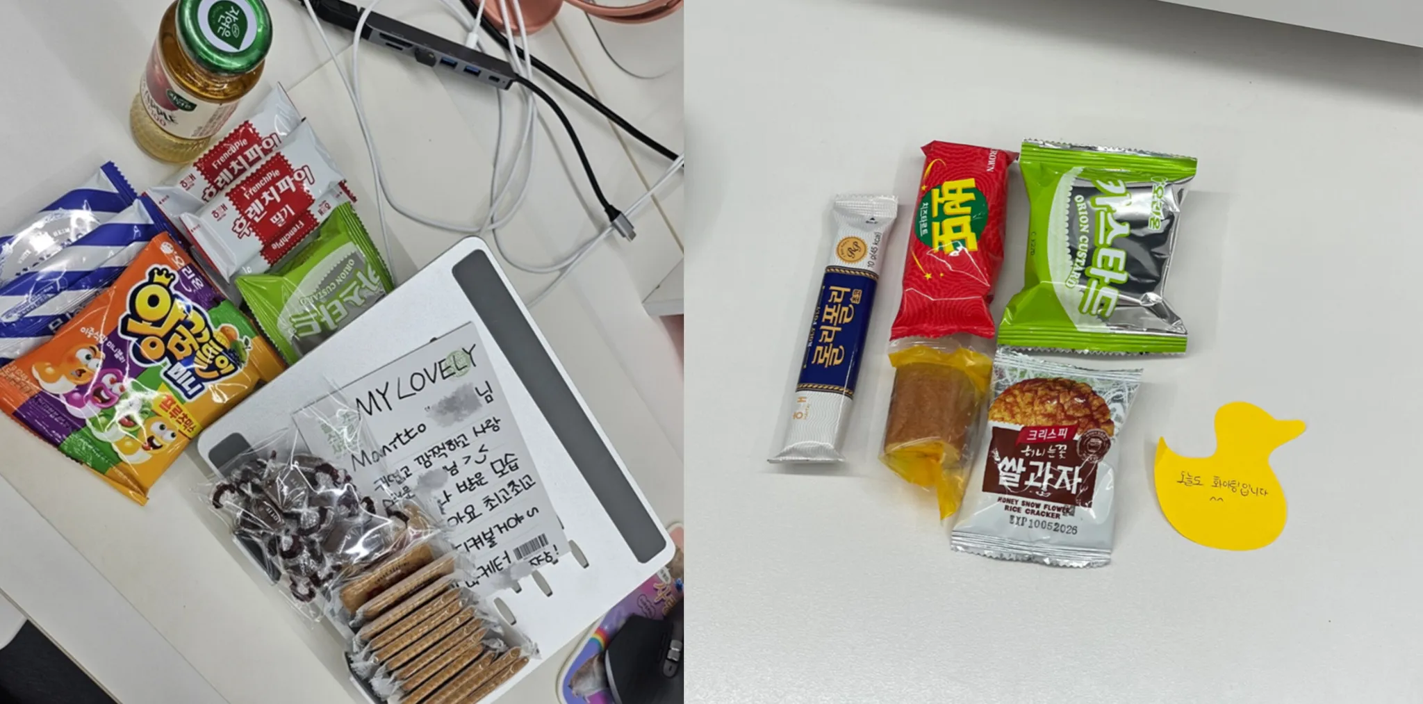 그 과정에서 자연스럽게 소소하지만 마음이 담긴 선물과 메시지를 주고받았답니다.