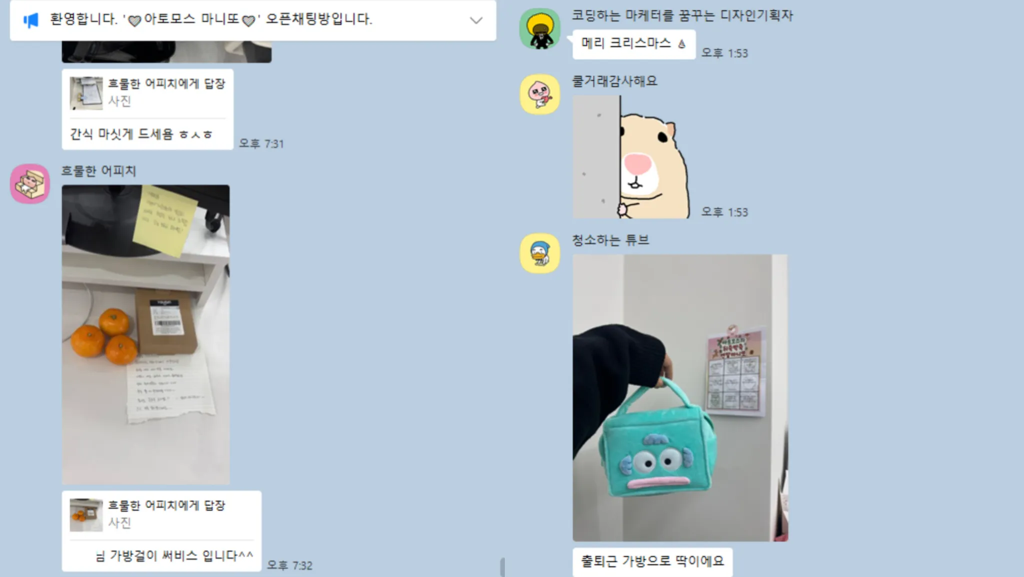 마니또에 관련한 이야기를 나눈다던가, 이벤트가 끝난 뒤에도 서로 선물 후기를 공유하느라 웃음꽃이 피었죠.